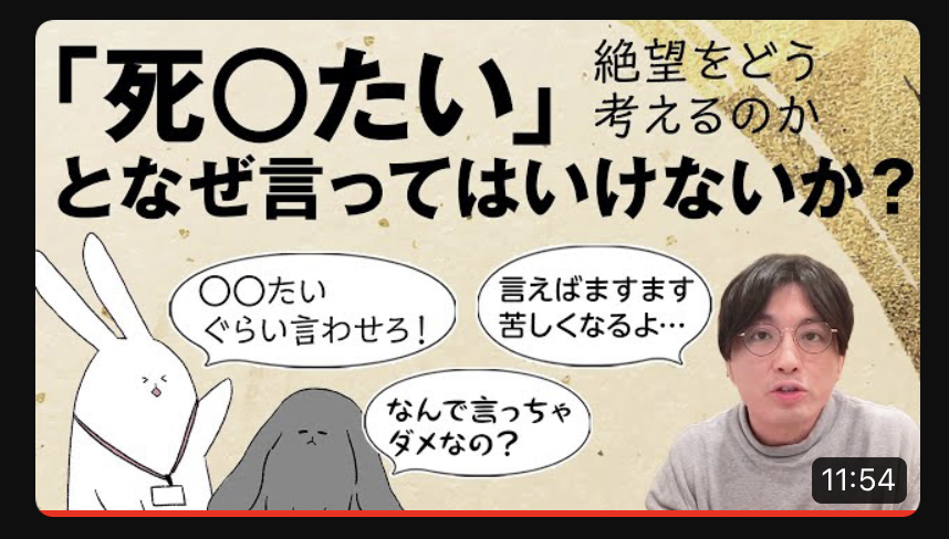 死にたいというと、入院につながりやすいので違う言葉に言い換えて、いろいろな人と話をしたり助けてもらうのが良い